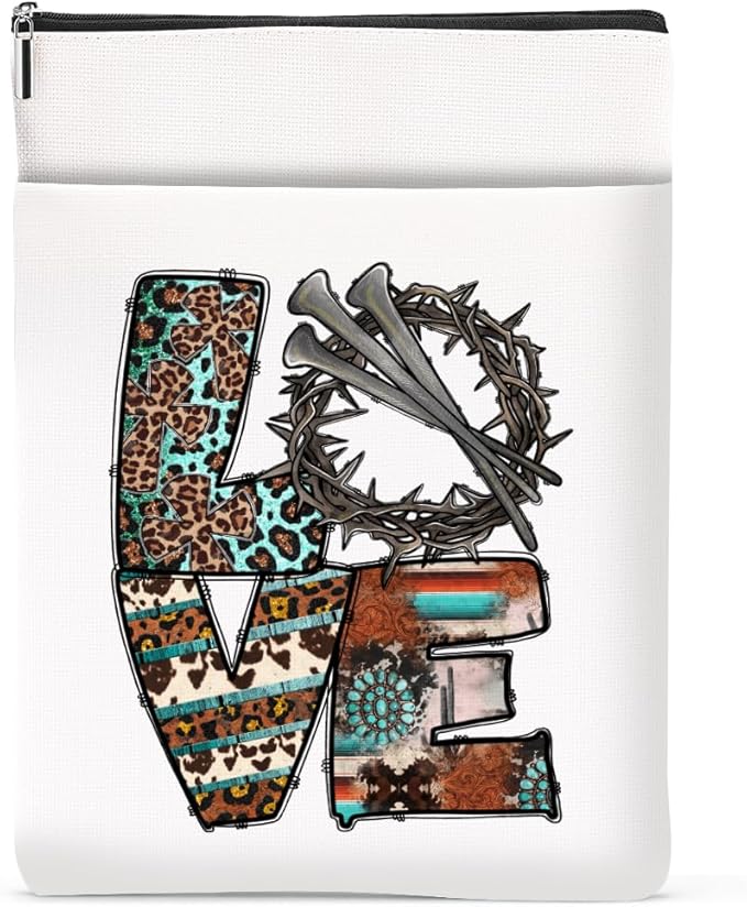 Inspirational Western Faith Christian Gifts Book Sleeve Book Cover Religious Cowgirl Accessories for Women Teacher Wife Graduation Christmas Birthday Book Lovers Gifts Book Protector with Zipper
