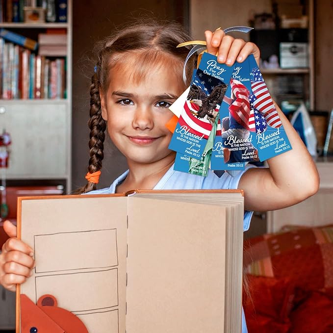 - Psalm 33: 12 Patriotic Design: [Pray for Our Nation; Blessed Is The Nation Whose God Is The Lord], these religious bible verse bookmarks are designed with various classic patriotic elements, such as the American flag and the Statue of Liberty, serving as ideal supplies for your Patriotic activities