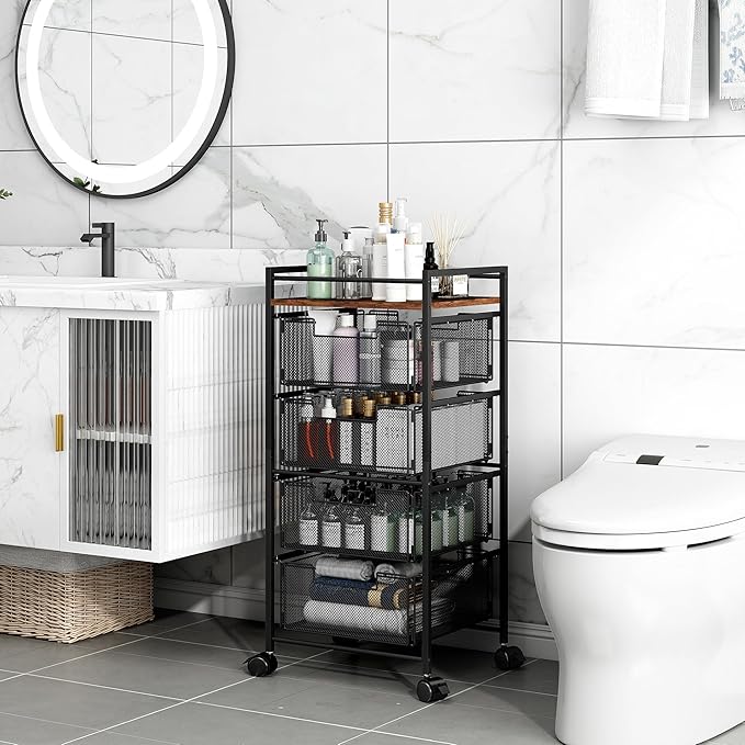 EasyPAG Rolling File Cabinet 4 Drawers Metal File Organizer Storage Cart Mobile File Cart with Removable Drawers with 4 Swivel Casters Rolling Wheels Cart, Black