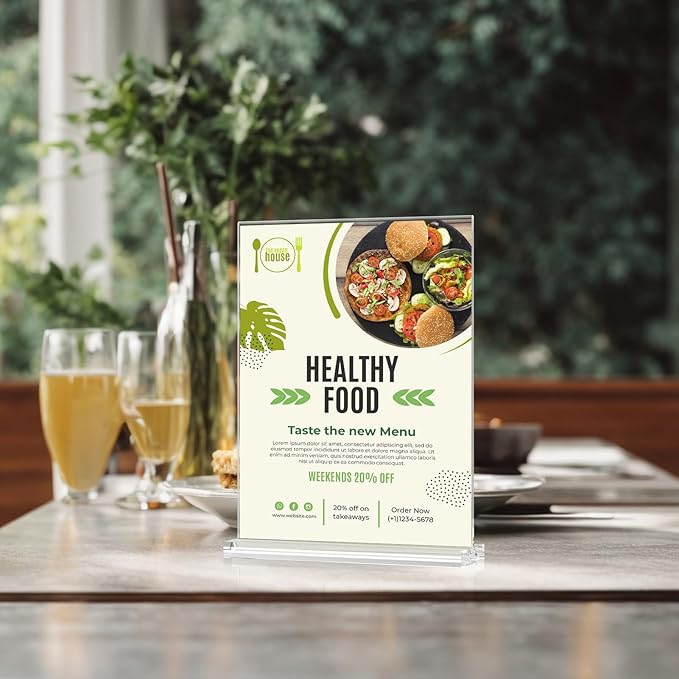 MaxGear Acrylic Sign Holder 8.5x11 Inches 18 Pack, Double Sided Clear Display Stand Table Top Paper Holder, Vertical Menu Flyer Stand, Plastic Frame for Stores, Restaurants, Hotels, Office