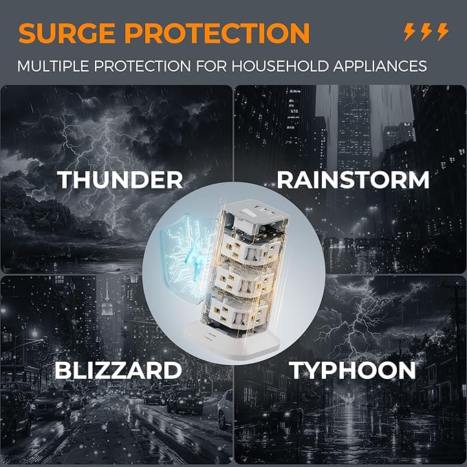 - Multiple Safety Protection: 900J Surge Protector Power Strip equips with overload protection, short-circuit protection, over-current protection, etc; Protect your expensive electric appliances, providing you with a safe charging environment
