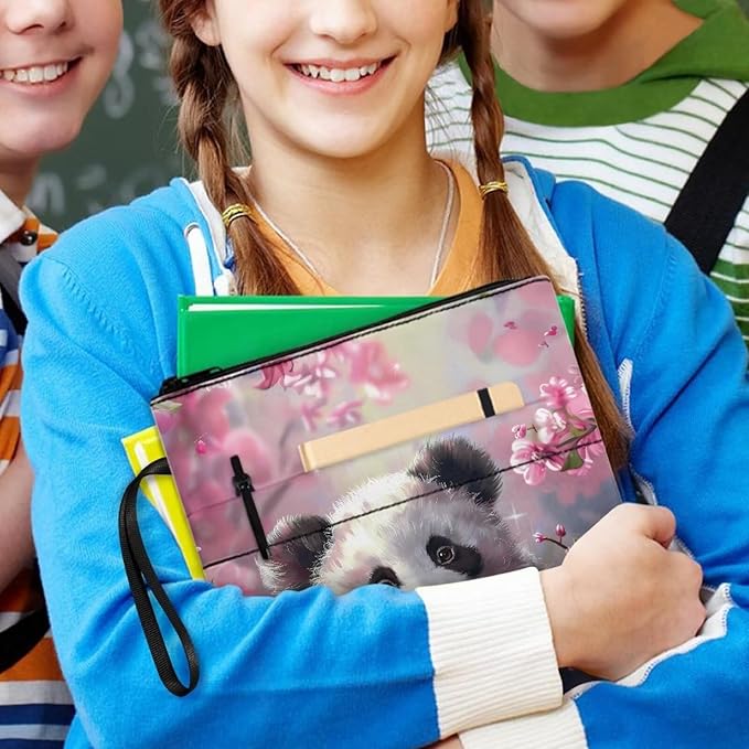 COEQINE 9"x11" Book Covers for Hardcover Cute Panda Animal Book Sleeves with Zipper Book Cover for Book Lovers Book Pouch Book Protctor Pouch Book Covers for Hardcover Washable Pink Cherry Blossom