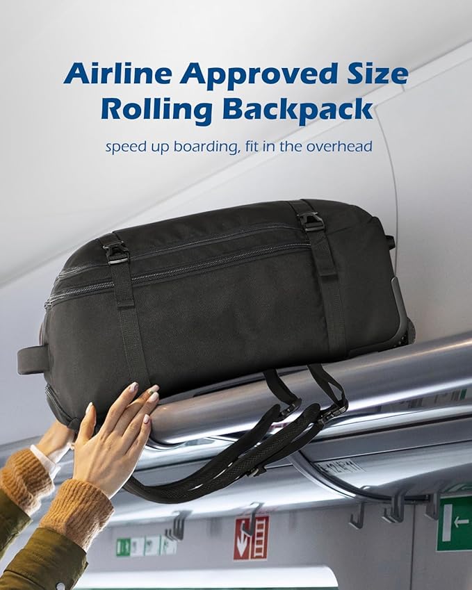 Hynes Eagle Rolling Backpack 42L Backpack with Wheels Airline Approved Carry on Luggage Laptop Travel Backpack for Women Men Black-2024