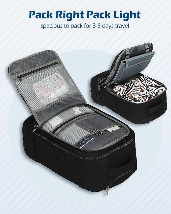 - 【Hidden Telescopic Handle】zip pocket is designed to hide the handle when you want to convert it as a carry on backpack, please note that zip the handle pocket up in the rainy day to avoid moisture your travel essentials in the main compartment