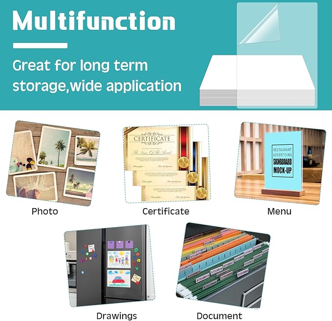 - Multiple Applications: our thermal laminating pouch is suitable for your documents, cards, artwork, photos, pictures, etc., with a flexible and stable surface, which can support long term service life