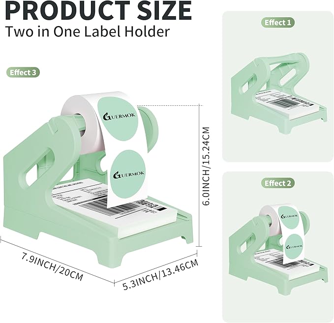 Guermok Thermal Shipping Label Holder for Rolls & Fan-Fold, Fragile Stickers for Shipping, Label Stand Desktop Printer Holder-Home Office Accessory Sticker Dispenser for Holographic (Green)