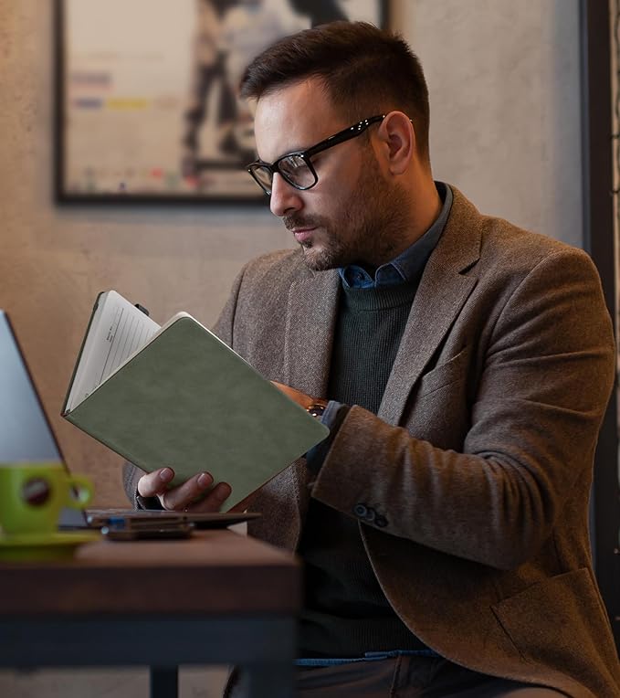 - 【Wide Usage】This leather bound journal for men women is perfect for office, business work, school, or personal use. Its premium quality, combined with the included pen set, makes it suitable for professionals, students, and creative individuals in any setting. From boardrooms to classrooms and home, this notebook is your trusted companion for capturing ideas, taking notes, and unleashing your imagination. The diary journal is idea for a special gift you can share with your friends and family.