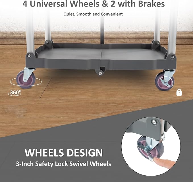 - 【Quality Material】Made from thick PP trays and lightweight aluminum framing, ensuring durability and longevity. Additionally, the rubber-lined handles make for comfortable daily use. It's the perfect service cart for anyone looking for a sturdy and reliable way to transport items.