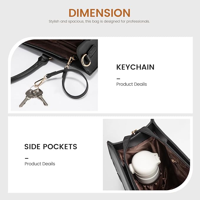 • Multi-Compartment Organization: Featuring a thoughtful multi-compartment design, the work bag includes double side pockets, a padded laptop and iPad compartment, slip pockets, pen slots. Ensures effective organization, making it easy to keep items in order