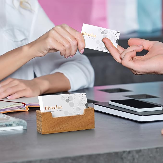 - Large Capacity: This wooden business card holder can hold up to 50 business cards depending on the thickness of the cards. It helps organize your desktop, making it clean and tidy. This design also makes the cards easy to remove!