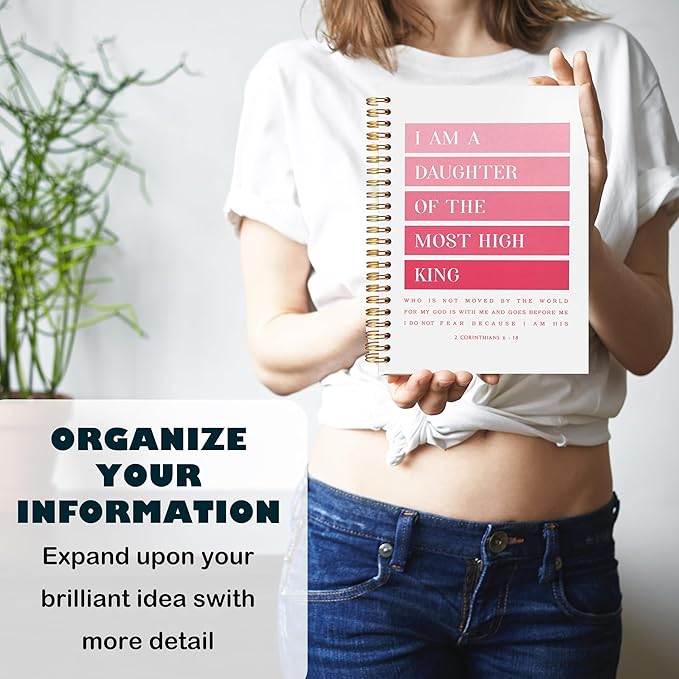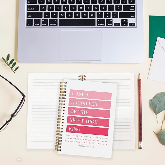 BearCake Pink Christian Notebook Journal - I am Daughter of the Most High King, Christian Gifts for Women, Bible Notebooks for Note Taking, Bible Journaling Notebook, Hardcover Spiral Notebook 5.5x8.3