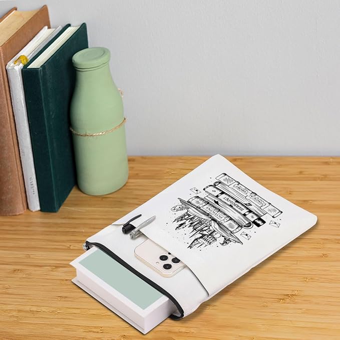 - Zippered Closure - Our book pouch is made flax material, reusable, wear-resistant, not easy to deformation and contraction, light weight, can protect your book well, It's also features a high-quality smooth zipper that prevents your books from slipping out, ideal for keeping your books safe while you travel.