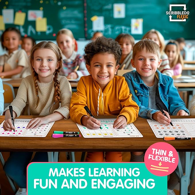 - Introducing Scribbledo FLEXIC– Our newest collection of flexible dry-erase sheets offers the same high-quality surface as our traditional boards but with added flexibility. These sheets are designed to be more affordable, lightweight, and space-saving, perfect for classrooms, homes, or on-the-go learning without the bulk of standard boards.