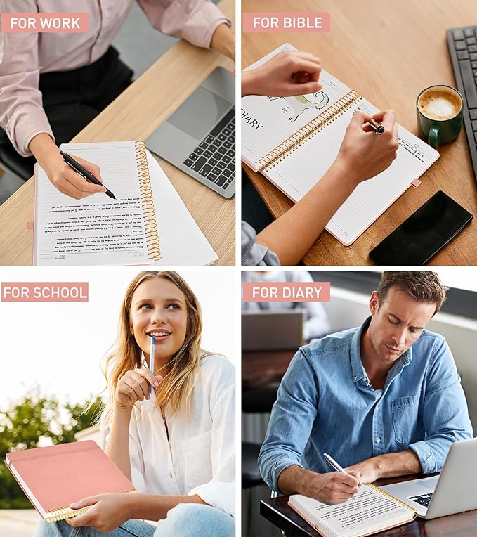 - 【Versatile and Functional spiral Journal】Our journaling notebooks features a sturdy single spiral binding helps you turn the page easily and keeps pages attached reliably. 180° lay flat design makes reading more convenient, and taking notes more efficient. Comes with an elastic closure band ensures that the notebook remains securely closed. Index labels are convenient for you to organize important note-taking notes. Built-in back pocket that is great for storing notes or other important items.