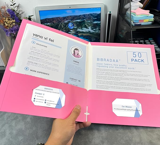 BIBRADAA® 50 Packs Pink Folders with Pockets,File Folder with Pockets Fit Letter Size Paper,File Folders Letter Size,Durable Paper Folders for School, Office, Business. (50, Pink)