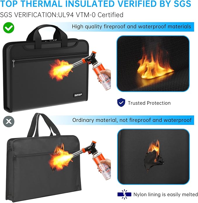 - Premium Fireproof Protection: Protect your files with ENGPOW fireproof accordion file organizer.It is made of 3-layered non-itchy silicone-coated fiberglass which withstand the temperature up to 2200℉ and is UL94 VTM-0 certified by SGS. This fireproof and water-resistant folder ensures your files stay safe from fire, flood, and wet weather, giving you peace of mind during emergencies. Nothing is completely foolproof, but added protection is always a good idea