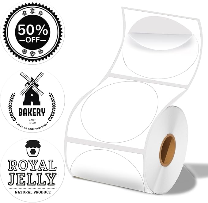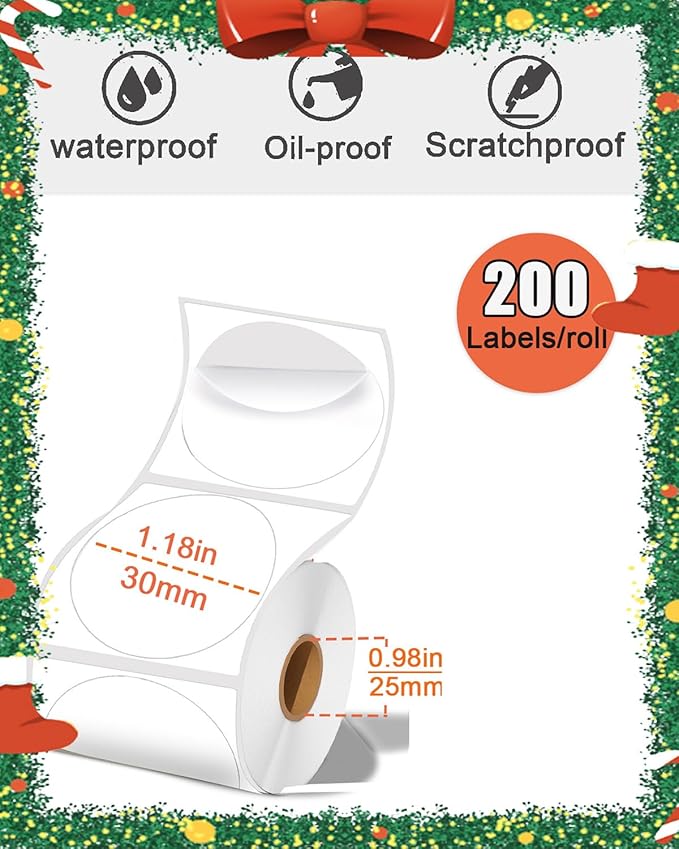 1.18×1.18 Round Thermal Labels, Round Thermal Sticker Labels for Business and Home, Thermal Printer Labels for DIY Logo Design, Thanks Card, 200 Labels for Printer 30mmx 30mm
