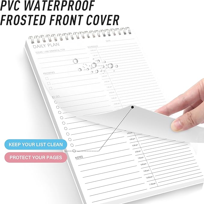 - Spiral Bound with Protective Cover: The twin spiral-bound design allows easy page flipping and tearing out. The plastic cover protects from spills, scratches, and tears, with a see-through feature for quick task reviews.