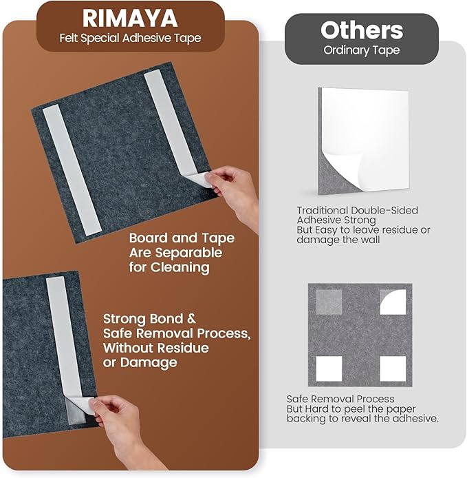 - 【Strong Adhesive & Easy to Stick and Peel】:Equipped with special adhesive tape, our cork boards stick securely to your wall and can be peeled off safely without leaving any residue or causing damage. The adhesive tape is separable from the corkboard, enabling you to remove and reinstall the panels as needed, even after cleaning.