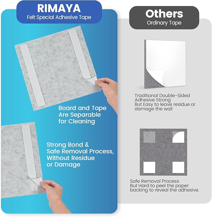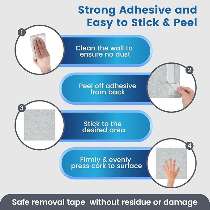 - 【Strong Adhesive & Easy to Stick and Peel】:Equipped with special adhesive tape, our cork boards stick securely to your wall and can be peeled off safely without leaving any residue or causing damage. The adhesive tape is separable from the corkboard, enabling you to remove and reinstall the panels as needed, even after cleaning.