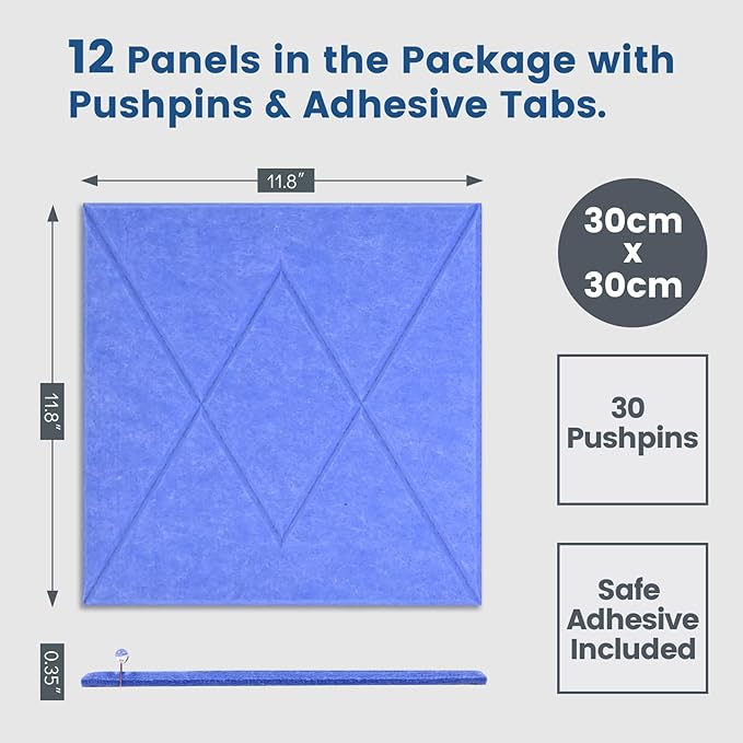 - 【Customizable Versatility】:Each set includes 12 felt panels (11.8"x11.8", 0.35" thick), special tape and 30 push pins, allowing you to create various poster board sizes like 48"x36" or 72"x48". The high-density felt is self-healing, so it looks new even after multiple uses, no unsightly pin holes.