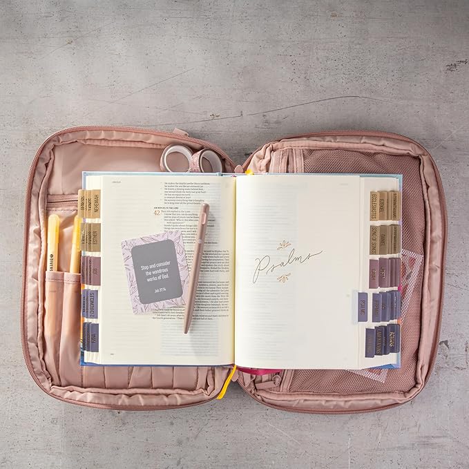 - Multipurpose Organizer: Can be an excellent Bible holder, journal case, paperback book cover, makeup cosmetic bag, tablet case, Bible study book bag, etc. The additional inner pockets allow you to store Bible highlighters, pens, prayer journals, church bulletins, sermon notes, prayer cards, notes or bookmarks.