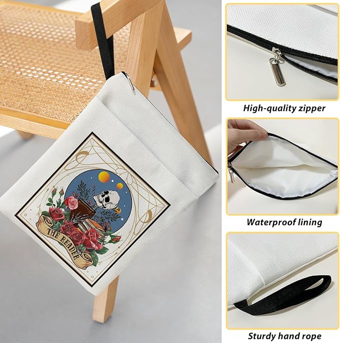 Gothic Skeleton Book Sleeve, Book Lovers Gifts Book Pouch Book Sleeve with Zipper and Front Pocket Reader Gifts Birthday Gifts for Adult Teen Teacher -03