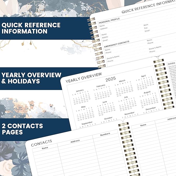 - Featured - 8" x 10" Monthly and Weekly Pages | Quick Reference Information | 2025-2026 Yearly Overview | 2025-2027 Holidays | Contact Pages | Premium Paper | Twin-wire Binding |