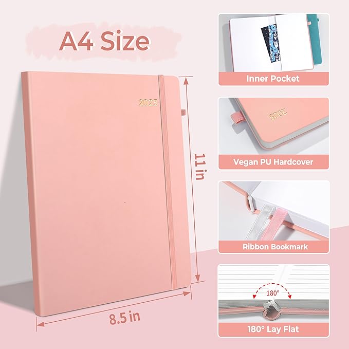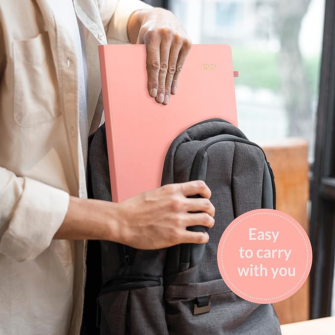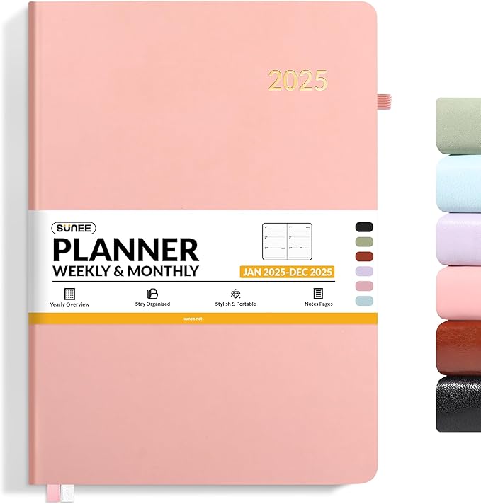 SUNEE 2025 Weekly & Monthly Hardcover Planner 8" x 11" - 12 Month (January 2025 - December 2025), Small Hardcover Planner, Pocket, Notes, 100 GSM Paper, Peach Pink