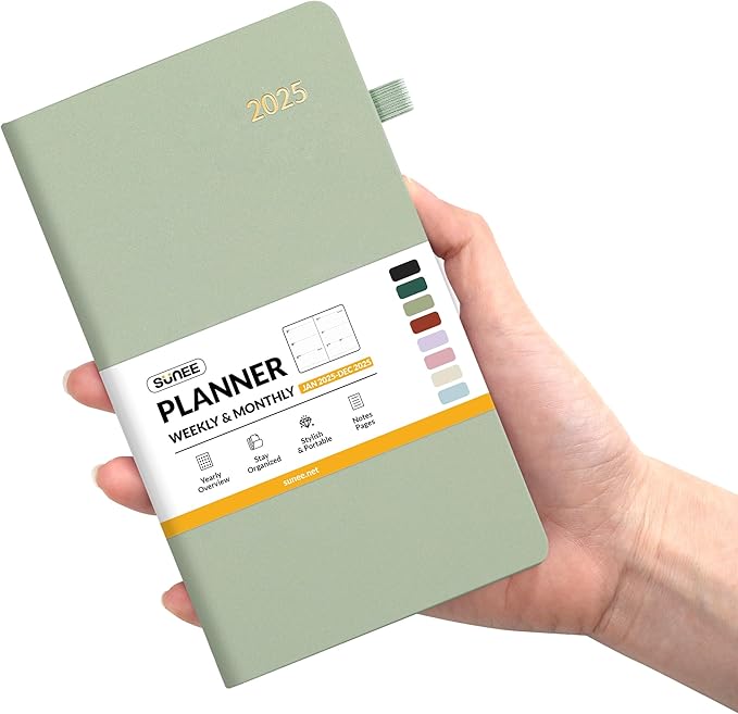 SUNEE 2025 Pocket Weekly Planner for Purse 3.5" x 6" - 12 Month (January 2025 - December 2025), Pocket Size Planner, Hardcover, Notes, Pocket, 100 GSM Paper, Sage Green