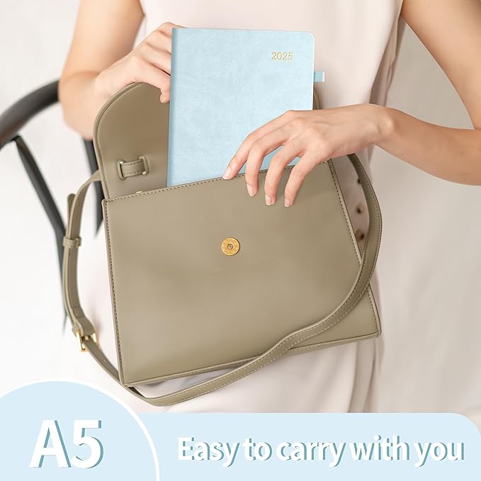SUNEE 2025 Weekly & Monthly Hardcover Planner 5.5" x 8.3" - 12 Month (January 2025 - December 2025), Small Hardcover Planner, Pocket, Notes, 100 GSM Paper, Grey Blue