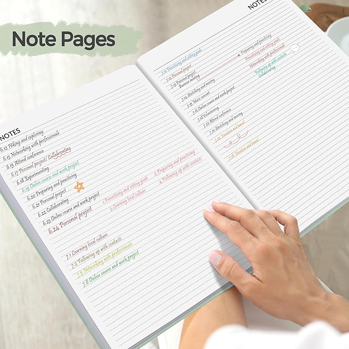 - Additional Features - The weekly planner includes 2025-2027 calendars, holiday lists, contact pages, notes pages, important dates, and US time zone map.