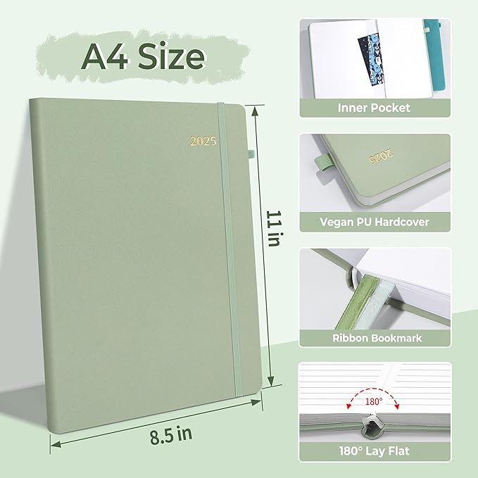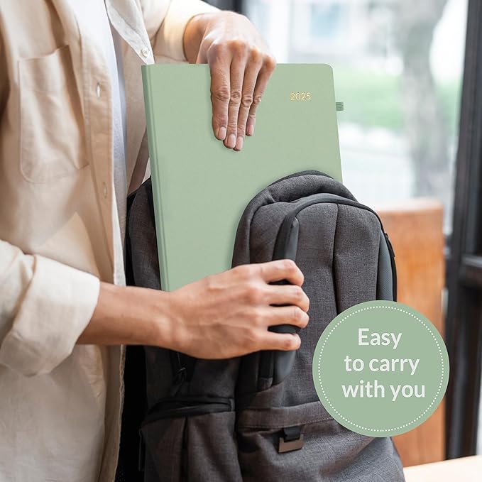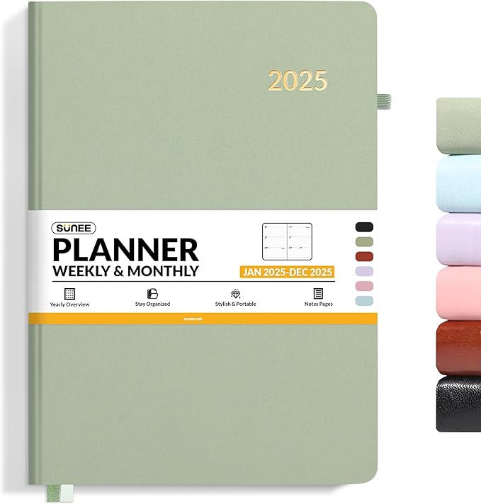 SUNEE 2025 Weekly & Monthly Hardcover Planner 8" x 11" - 12 Month (January 2025 - December 2025), Small Hardcover Planner, Pocket, Notes, 100 GSM Paper, Sage Green