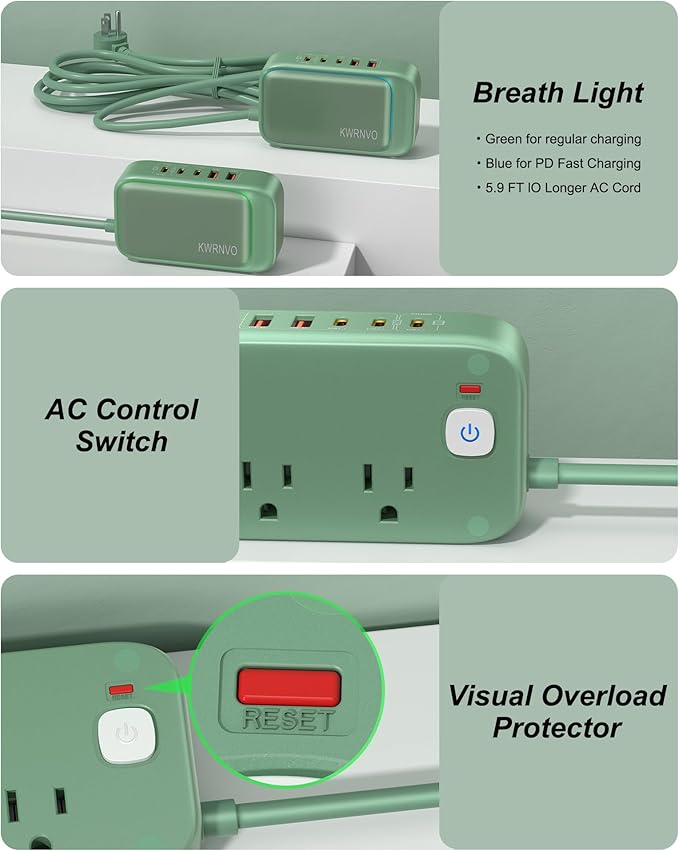 - What You Get: KWRNVO 7-in-1 USB Power Strip PD 20W, 18-month warranty, 30 days return guarantee and 24/7 friendly customer service