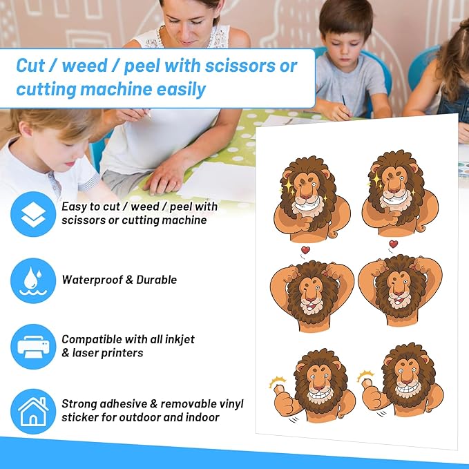 - Easy to Use with Printers & Cutters - This Inkjet printable vinyl sticker paper in a standard size of 8.26" x 11.69" can be used for inkjet printer. It’s also compatible with all craft cutters and easy to cut with a scissors.