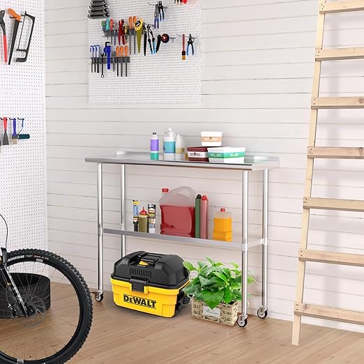 - All-Purpose Utility: Whether you're a home cook or a pro in a commercial kitchen, this table is up to the task. It's suitable for both indoor and outdoor use, from home kitchens to restaurants, bakeries, butcher shops, patios, garages, laundry rooms, and more