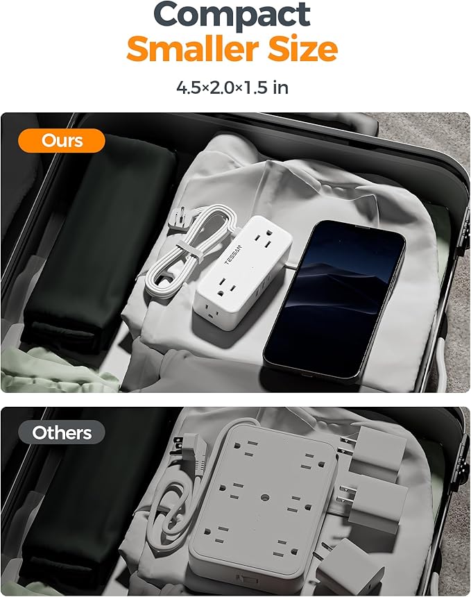 - 900J Surge Protector Outlet: Flat power strip equipped with short-circuit protection and over-current protection. Flat outlet extension cord protects your electrical appliances from lighting, surges and spikes at home, office dorm etc