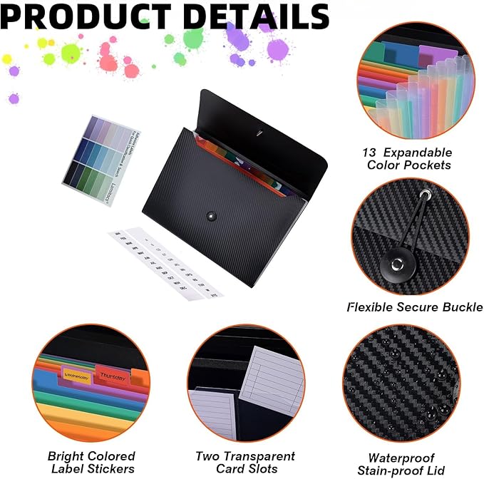 - 【Customizable Labels for Personalized Organization】✏️ With included label slots, this expanding file folder allows you to fully customize your filing system. Perfect for personal or professional use, it adapts to your organizational needs with ease.