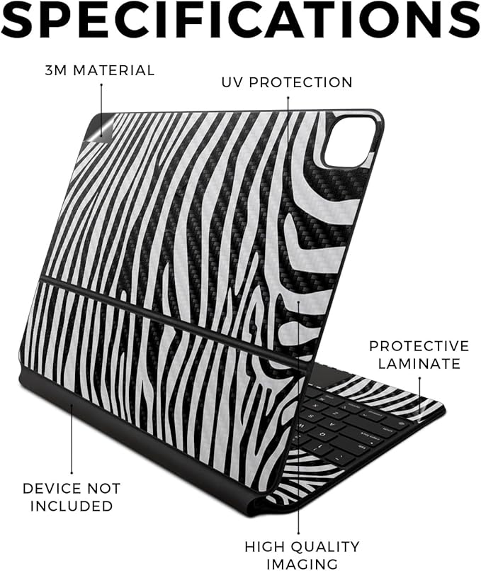 Carbon Fiber Skin Compatible with Apple Magic Keyboard for iPad Air 13-inch (M2) 2024 - Black Zebra - Premium 3M Vinyl Protective Wrap Decal Cover - Easy to Apply | Crafted in The USA by MightySkins
