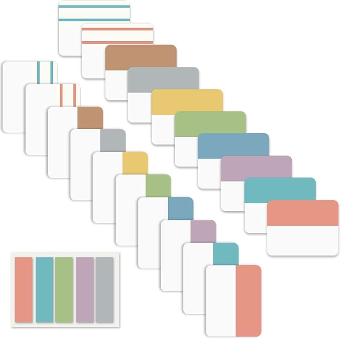 - 500 pieces Book Tabs: 500 pieces 21 sets in total, 400 pieces 2 inch sticky tabs in 20 sets with 10 different pastle colors,100 pieces 0.5 in tabs in 1sets, 20 pieces each color