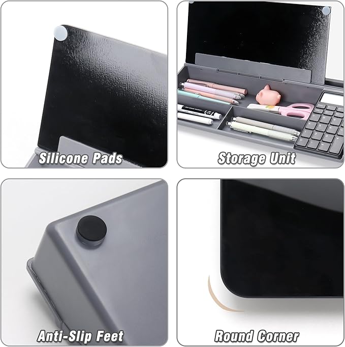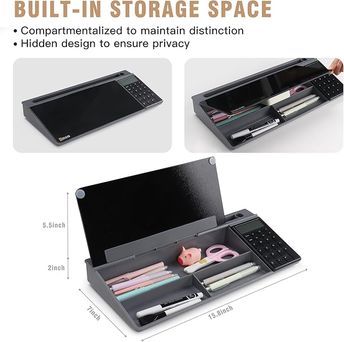 - ✅MULTIFUNCTIONAL: Storage, calculate, write, hold iPad, keyboard stand,our desktop white board is an all in one multipurpose desk board buddy.Equipped with 1 black dry erase marker,smooth writing,also with the eraser cap for easily wipe.