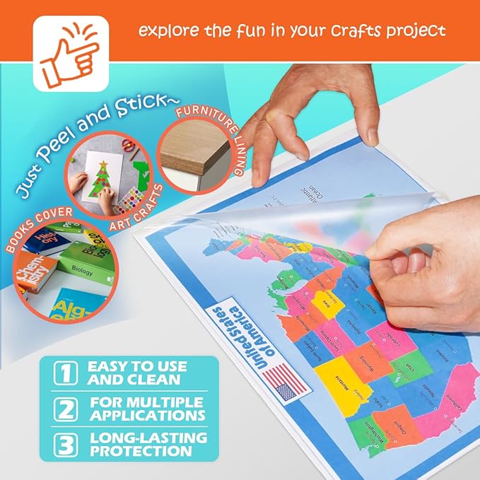 - Self adhesive clear contact paper peel and stick for books cover crafts artwork applies, also consider for other smooth surfaces protective adhesive liner