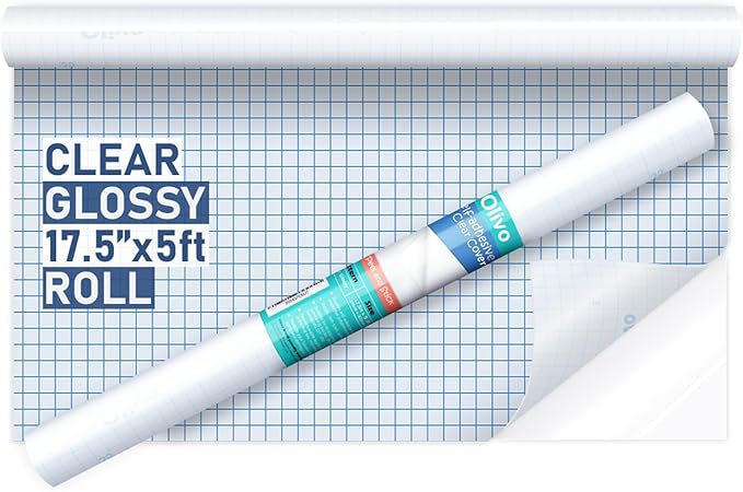 Olivo Clear Contact Paper Roll for Books Crafts 17.5 in x 5 ft Peel and Stick Adhesive Book Cover Plastic Protector