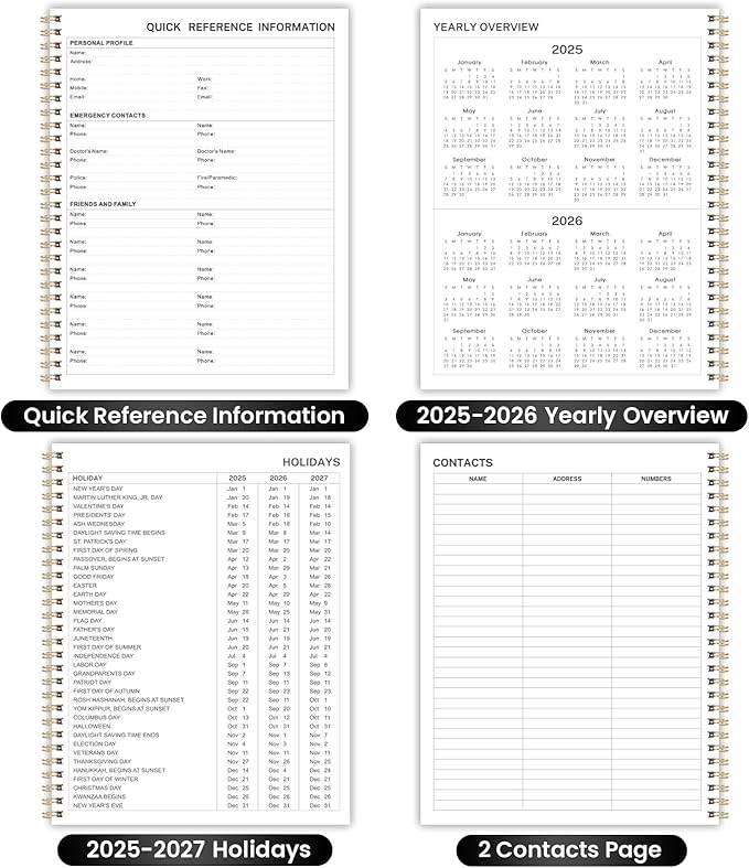 - 📝 Perfect Organizer - Utilizing this 2025 planner with classic gray cover to help you schedule all your appointments and daily activities, plan events, set goals and get things done.