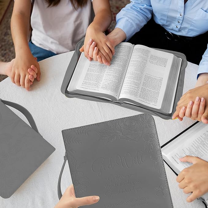 - BRIEFCASE LARGE & MEDIUM SIZES: Our Grey briefcase for women measures itself 11 x 7,6 x 2.3 inches and fits book up to 7 x 10.1 x 1.9 inches; The Bible carrying case has loop inside for a pen so you can take notes as you read the Scripture