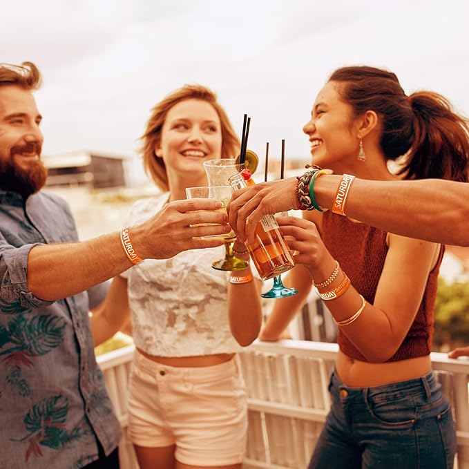 Henoyso 600 Pcs Saturday Paper Wristbands Event Wristbands Paper Bracelets Wristbands Numbered Waterproof Party Wristbands for Events Day of The Week(Orange)