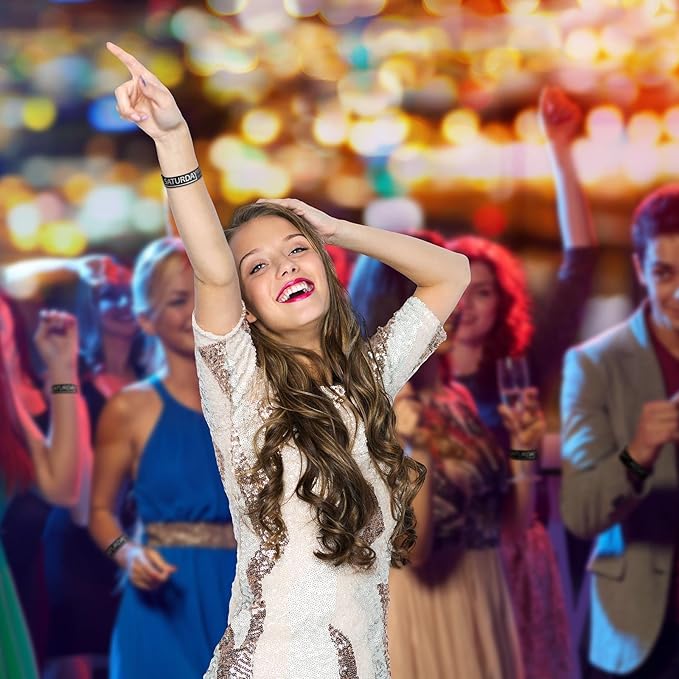 - Easy to Use: our day of the week wristbands are light and have proper size, easy for you to use, also easy to store when not in use, will give you a good using experience; You can use them in concerts, clubs, parties, shows and other places