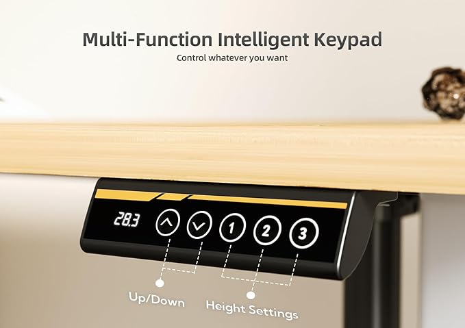 - Electric Height Adjustable: The stand-up desk features three preset buttons to customize your desired heights from 28.3" to 46.5".