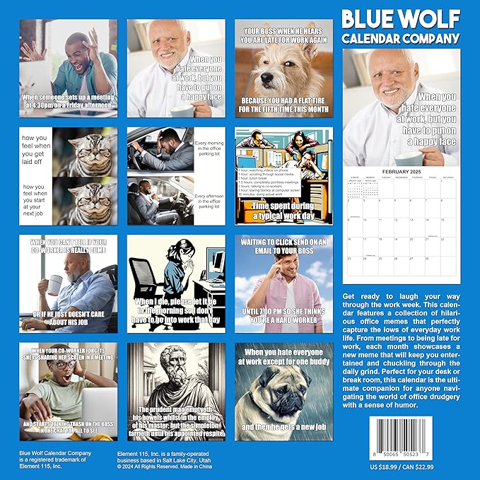 - HILARIOUS OFFICE MEMES – Each month of this uninspirational calendar 2025 features a different sarcastic meme capturing the woes of office life