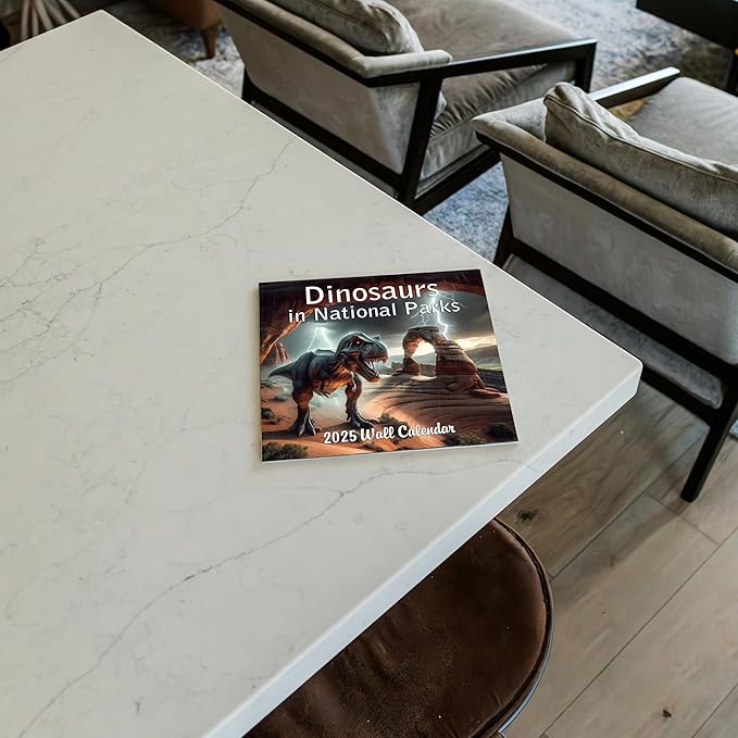 - 🦕 DINOSAURS IN NATIONAL PARKS – Each month pairs realistic dinosaur artwork with breathtaking national park scenery.